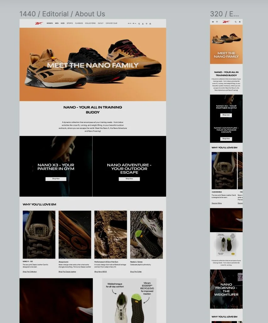 As the primary orchestrator behind the inception of Reebok Editorials, I collaborated in curating content lists, contributed to the design phase of landing pages, and cohesively coordinated the release of 2023/2024 content on the Reebok website.